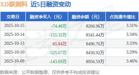 证券之星消息,10月15日,XD联测科(688113)融资买入248.14万元,融资偿还322.63万元,融资净卖出74.48万元,融资余额8266.96万元。