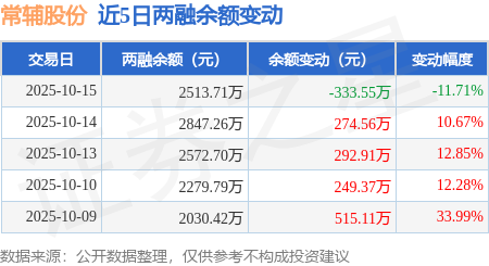 证券之星消息,10月15日,常辅股份(920396)融资买入732.6万元,融资偿还1066.15万元,融资净卖出333.55万元,融资余额2513.71万元。