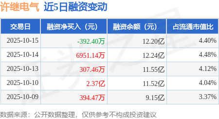 证券之星消息,10月15日,许继电气(000400)融资买入2.28亿元,融资偿还2.32亿元,融资净卖出392.4万元,融资余额12.2亿元,近20个交易日中有15个交易日出现融资净买入。