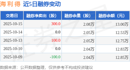 证券之星消息,10月15日,海 利 得(002206)融资买入1349.62万元,融资偿还1775.19万元,融资净卖出425.57万元,融资余额2.45亿元,近20个交易日中有13个交易日出现融资净买入。