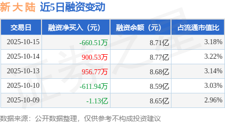 证券之星消息,10月15日,新 大 陆(000997)融资买入2279.95万元,融资偿还2940.45万元,融资净卖出660.51万元,融资余额8.71亿元。