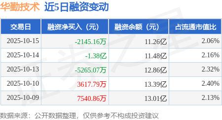 证券之星消息,10月15日,华勤技术(603296)融资买入8195.84万元,融资偿还1.03亿元,融资净卖出2145.16万元,融资余额11.26亿元,近20个交易日中有11个交易日出现融资净买入。