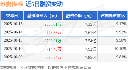 证券之星消息,10月15日,苏奥传感(300507)融资买入9007.39万元,融资偿还1.17亿元,融资净卖出2666.01万元,融资余额7.35亿元,近20个交易日中有11个交易日出现融资净买入。