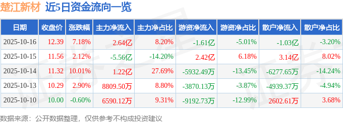 10月16日的资金流向数据方面,主力资金净流入2.64亿元,占总成交额8.2%,游资资金净流出1.61亿元,占总成交额5.01%,散户资金净流出1.03亿元,占总成交额3.2%。