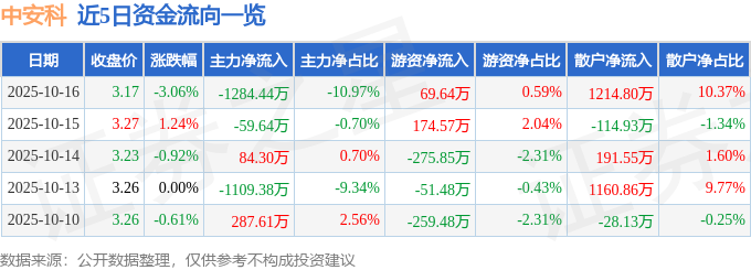 证券之星消息,截至2025年10月16日收盘,中安科(600654)报收于3.17元,下跌3.06%,换手率1.58%,成交量36.7万手,成交额1.17亿元。