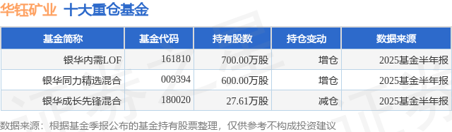 根据2025基金半年报公募基金重仓股数据,重仓该股的公募基金共3家,其中持有数量最多的公募基金为银华基金的银华内需LOF。银华内需LOF目前规模为14.98亿元,最新净值4.098(10月15日),较上一交易日上涨0.91%,近一年上涨66.11%。该公募基金现任基金经理为刘辉 王利刚。刘辉在任的基金产品包括:银华同力精选混合,管理时间为2020年6月16日至今,期间收益率为29.81%;银华创业板两年定期开放混合,管理时间为2020年8月7日至今,期间收益率为-17.46%。王利刚在任的基金产品包括:银华成长先锋混合,管理时间为2019年12月31日至今,期间收益率为28.15%;银华创业板两年定期开放混合,管理时间为2020年8月7日至今,期间收益率为-17.46%;银华同力精选混合,管理时间为2021年4月26日至今,期间收益率为31.09%;