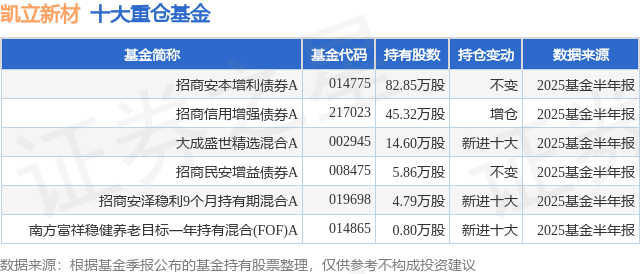 根据2025基金半年报公募基金重仓股数据,重仓该股的公募基金共6家,其中持有数量最多的公募基金为招商基金的招商安本增利债券A。招商安本增利债券A目前规模为11.48亿元,最新净值1.8244(10月15日),较上一交易日上涨0.41%,近一年上涨17.55%。该公募基金现任基金经理为滕越 王娟娟。滕越在任的基金产品包括:招商信用增强债券A,管理时间为2017年7月29日至今,期间收益率为34.15%;招商民安增益债券A,管理时间为2020年3月6日至今,期间收益率为32.25%;招商安泽稳利9个月持有期混合A,管理时间为2023年11月14日至今,期间收益率为19.85%。王娟娟在任的基金产品包括:招商招悦纯债A,管理时间为2021年12月31日至今,期间收益率为15.01%;招商安华债券A,管理时间为2021年12月31日至今,期间收益率为11.55%;招商享利增强债券A,管理时间为2022年2月24日至今,期间收益率为7.12%。
