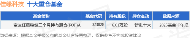 根据2025基金半年报公募基金重仓股数据,重仓该股的公募基金共1家,其中持有数量最多的公募基金为富达基金(中国)的富达任远稳健三个月持有混合(FOF)A。富达任远稳健三个月持有混合(FOF)A目前规模为1.47亿元,最新净值1.0274(10月13日),较上一交易日下跌0.02%。该公募基金现任基金经理为赵强。