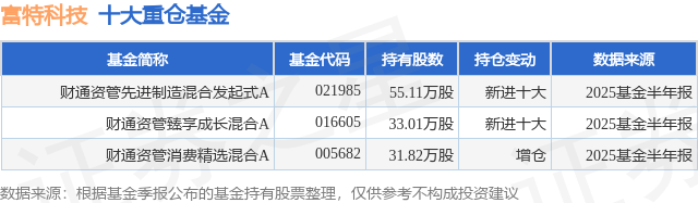 根据2025基金半年报公募基金重仓股数据,重仓该股的公募基金共3家,其中持有数量最多的公募基金为财通资管的财通资管先进制造混合发起式A。财通资管先进制造混合发起式A目前规模为0.41亿元,最新净值1.756(10月15日),较上一交易日上涨4.36%。该公募基金现任基金经理为徐竞择。