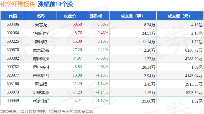 证券之星消息,10月16日化学纤维板块较上一交易日下跌1.45%,南京化纤领跌。当日上证指数报收于3916.23,上涨0.1%。深证成指报收于13086.41,下跌0.25%。化学纤维板块个股涨跌见下表: