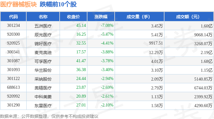 证券之星消息,10月16日医疗器械板块较上一交易日上涨0.34%,英科医疗领涨。当日上证指数报收于3916.23,上涨0.1%。深证成指报收于13086.41,下跌0.25%。医疗器械板块个股涨跌见下表: