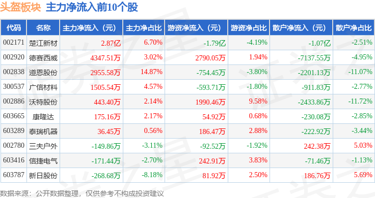 从资金流向上来看,当日头盔板块主力资金净流出6.82亿元,游资资金净流入4198.43万元,散户资金净流入6.4亿元。头盔板块个股资金流向见下表: