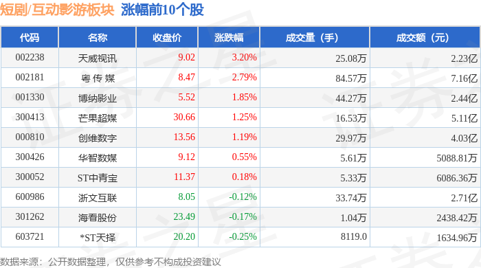 证券之星消息,10月16日短剧/互动影游板块较上一交易日下跌1.25%,线上线下领跌。当日上证指数报收于3916.23,上涨0.1%。深证成指报收于13086.41,下跌0.25%。短剧/互动影游板块个股涨跌见下表: