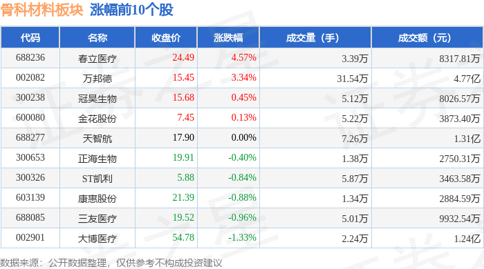 从资金流向上来看,当日骨科材料板块主力资金净流出1.22亿元,游资资金净流出4196.32万元,散户资金净流入1.64亿元。骨科材料板块个股资金流向见下表:
