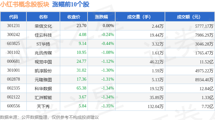 从资金流向上来看,当日小红书概念股板块主力资金净流出12.15亿元,游资资金净流入8968.72万元,散户资金净流入11.26亿元。小红书概念股板块个股资金流向见下表: