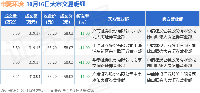 证券之星消息,10月16日申菱环境发生大宗交易,交易数据如下: