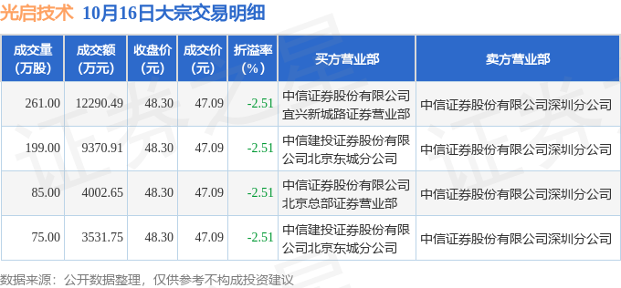 证券之星消息,10月16日光启技术发生大宗交易,交易数据如下: