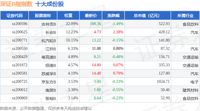 资金流向方面,深证B指(399108)指数成份股当日主力资金净流入合计443.28万元,游资资金净流出合计645.42万元,散户资金净流入合计202.14万元。成份股资金流向详情见下表: