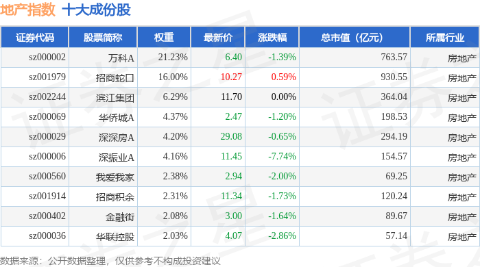 资金流向方面,地产指数(399241)成份股当日主力资金净流入合计95.14万元,游资资金净流出合计5658.4万元,散户资金净流入合计5563.26万元。成份股资金流向详情见下表: