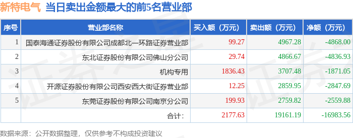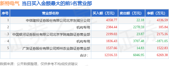 证券之星消息,沪深交易所2025年10月16日公布的交易公开信息显示,新特电气(301120)因日换手率达到30%的前5只证券登上龙虎榜。此次是近5个交易日内第3次上榜。