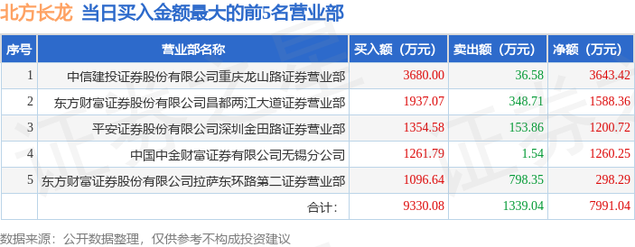 证券之星消息,沪深交易所2025年10月16日公布的交易公开信息显示,北方长龙(301357)因日换手率达到30%的前5只证券登上龙虎榜。此次是近5个交易日内第5次上榜。