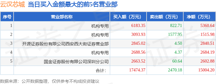 证券小知识:龙虎榜是交易所披露的竞价交易公开信息,现身龙虎榜的个股都是当日最为活跃的个股,是投资者日常重点关注的数据。交易所公布当日买入金额和卖出金额前五名的席位,其中一些席位代表特殊意义,如机构专用席位是指基金专用席位、券商自营专用席位、社保专用席位、券商理财专用席位、保险机构专用席位、保险机构租用席位、QFII专用席位等机构投资者买卖证券的专用通道和席位。深股通专用、沪股通专用为北向资金的交易席位。从龙虎榜数据可以发现和研究机构、游资和散户的资金动向。一些营业部席位经常上榜,市场知名度较高,投资者整理代表散户、游资、量化等不同资金的营业部席位。