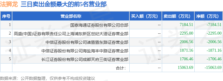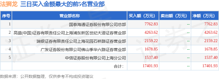 证券之星消息,沪深交易所2025年10月16日公布的交易公开信息显示,法狮龙(605318)因非ST、*ST和S证券连续三个交易日内收盘价格涨幅偏离值累计达到20%的证券登上龙虎榜。此次是近5个交易日内第1次上榜。
