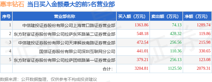 证券之星消息,沪深交易所2025年10月16日公布的交易公开信息显示,惠丰钻石(920725)因当日换手率达到20%的前5只股票登上龙虎榜。此次是近5个交易日内第3次上榜。