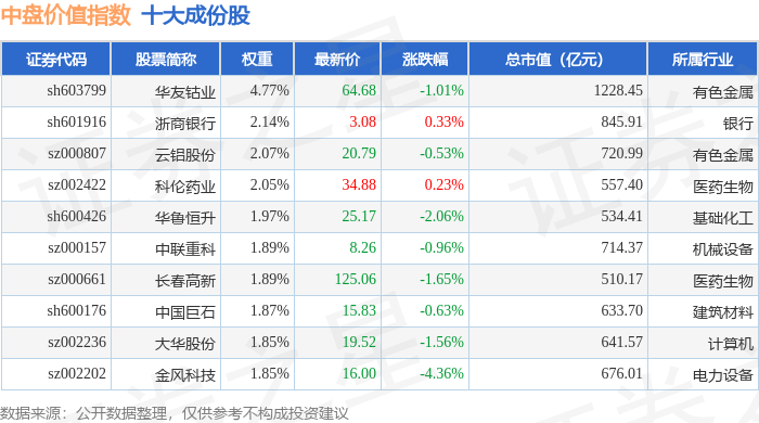 证券之星消息,10月16日,中盘价值(399375)指数报收于5710.93点,跌0.8%,成交530.01亿元,换手率1.24%。当日该指数成份股中,上涨的有37家,潞安环能以3.44%的涨幅领涨,下跌的有59家,华菱钢铁以5.7%的跌幅领跌。