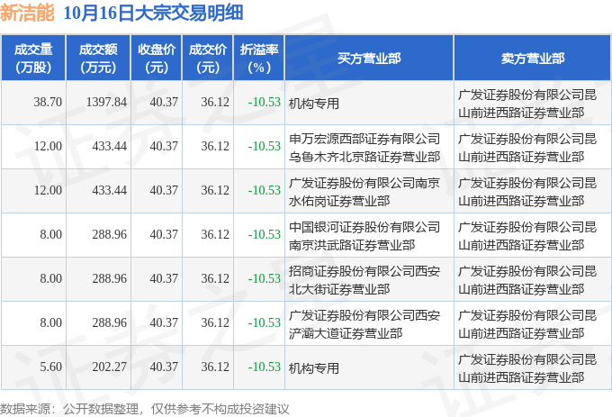 证券之星消息,10月16日新洁能发生大宗交易,交易数据如下: