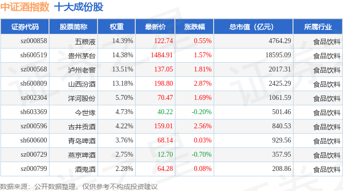资金流向方面,中证酒(399987)指数成份股当日主力资金净流入合计6.55亿元,游资资金净流出合计7.03亿元,散户资金净流入合计4804.92万元。成份股资金流向详情见下表: