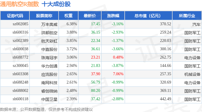 资金流向方面,通用航空R(480076)指数成份股当日主力资金净流出合计16.42亿元,游资资金净流入合计2.66亿元,散户资金净流入合计13.75亿元。成份股资金流向详情见下表: