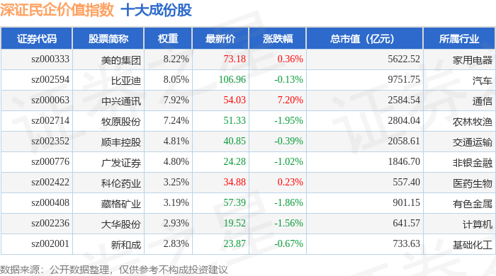 深证民企价值(970072)指数十大成份股详情如下: