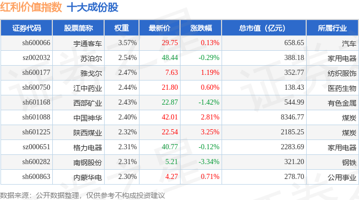 红利价值(980103)指数十大成份股详情如下: