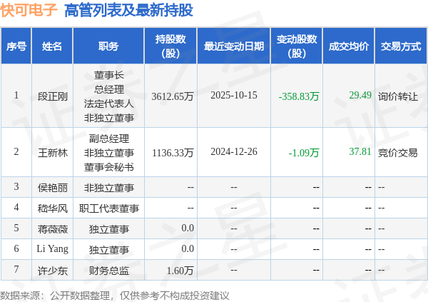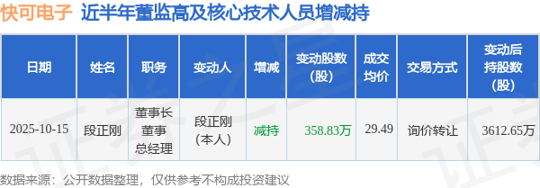 快可电子近半年内的董监高及核心技术人员增减持详情如下: