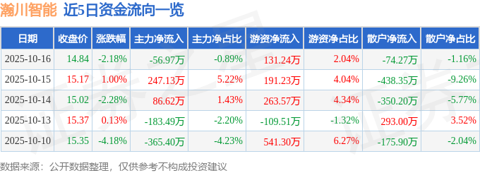 10月16日的资金流向数据方面,主力资金净流出56.97万元,占总成交额0.89%,游资资金净流入131.24万元,占总成交额2.04%,散户资金净流出74.27万元,占总成交额1.16%。
