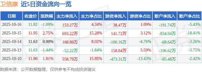 10月16日的资金流向数据方面,主力资金净流入153.27万元,占总成交额4.34%,游资资金净流入38.47万元,占总成交额1.09%,散户资金净流出191.74万元,占总成交额5.43%。