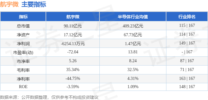 航宇微2025年中报显示,公司主营收入1.4亿元,同比下降3.99%;归母净利润-6254.13万元,同比下降154.25%;扣非净利润-6978.49万元,同比下降107.21%;其中2025年第二季度,公司单季度主营收入5140.8万元,同比下降24.71%;单季度归母净利润-6377.92万元,同比下降100.78%;单季度扣非净利润-6606.49万元,同比下降78.01%;负债率30.4%,投资收益31.62万元,财务费用312.73万元,毛利率35.34%。航宇微(300053)主营业务:从事嵌入式SoC/SiP芯片/模块、航空电子系统、宇航控制系统、人脸识别与智能图像分析、人工智能、卫星星座及卫星大数据服务平台研制生产。