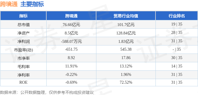 跨境通2025年中报显示,公司主营收入26.31亿元,同比下降9.88%;归母净利润-588.07万元,同比上升48.34%;扣非净利润-692.42万元,同比上升71.07%;其中2025年第二季度,公司单季度主营收入13.77亿元,同比下降16.18%;单季度归母净利润-199.42万元,同比下降133.1%;单季度扣非净利润-323.89万元,同比上升19.82%;负债率73.79%,投资收益177.58万元,财务费用8138.34万元,毛利率11.91%。跨境通(002640)主营业务:跨境出口业务、跨境进口业务。