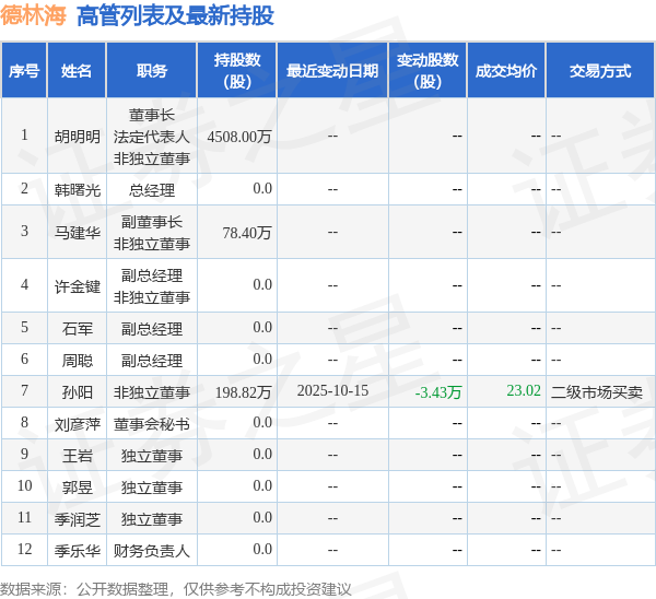 德林海近半年内的董监高及核心技术人员增减持详情如下: