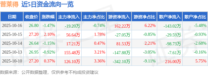 10月16日的资金流向数据方面,主力资金净流出19.2万元,占总成交额0.74%,游资资金净流入162.22万元,占总成交额6.22%,散户资金净流出143.02万元,占总成交额5.48%。