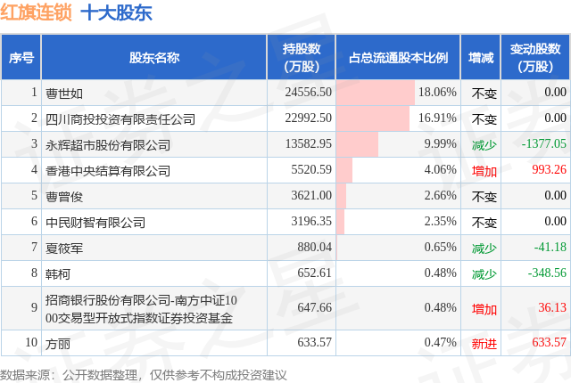 根据红旗连锁2025年中报公布的十大股东详情如下: