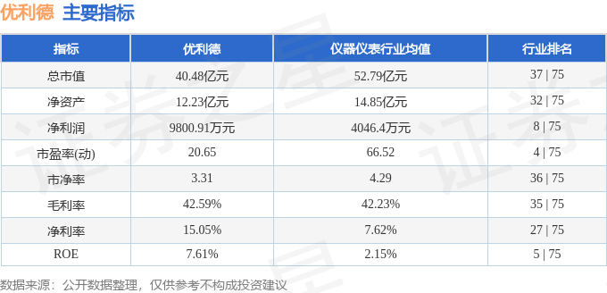 优利德2025年中报显示,公司主营收入6.17亿元,同比上升9.52%;归母净利润9800.91万元,同比下降5.14%;扣非净利润9312.41万元,同比下降7.33%;其中2025年第二季度,公司单季度主营收入3.06亿元,同比上升9.47%;单季度归母净利润4290.25万元,同比下降11.92%;单季度扣非净利润3944.4万元,同比下降14.81%;负债率26.55%,投资收益269.81万元,财务费用-782.99万元,毛利率42.59%。优利德(688628)主营业务:公司一直致力于测试测量仪器仪表的研发、生产和销售,主要包括通用仪表、专业仪表、温度及环境测试仪表、测试仪器四大产品线,广泛应用于电子、家用电器、机电设备、节能环保、轨道交通、汽车制造、冷暖通、建筑工程、5G新基建、新能源、物联网、大数据中心、人工智能、电力建设及维护、高等教育和科学研究等领域。