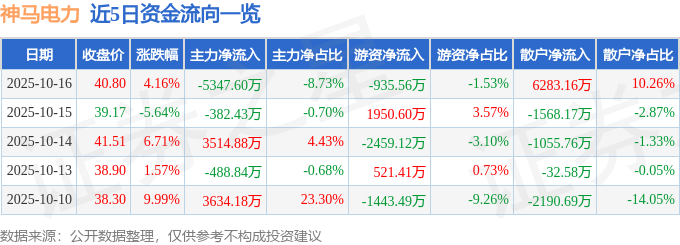 证券之星消息,截至2025年10月16日收盘,神马电力(603530)报收于40.8元,上涨4.16%,换手率3.67%,成交量15.7万手,成交额6.12亿元。