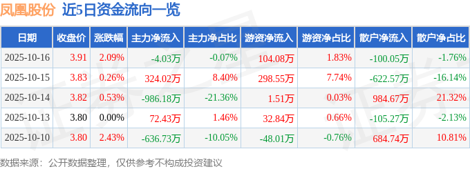证券之星消息,截至2025年10月16日收盘,凤凰股份(600716)报收于3.91元,上涨2.09%,换手率1.56%,成交量14.63万手,成交额5684.49万元。