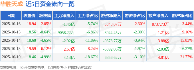 证券之星消息,截至2025年10月16日收盘,华胜天成(600410)报收于18.94元,上涨2.05%,换手率12.36%,成交量135.53万手,成交额25.41亿元。