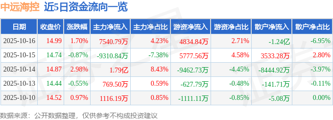 10月16日的资金流向数据方面,主力资金净流入7540.79万元,占总成交额4.23%,游资资金净流入4834.84万元,占总成交额2.71%,散户资金净流出1.24亿元,占总成交额6.95%。