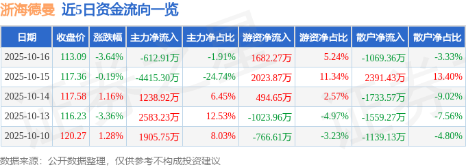 证券之星消息,截至2025年10月16日收盘,浙海德曼(688577)报收于113.09元,下跌3.64%,换手率2.55%,成交量2.83万手,成交额3.21亿元。