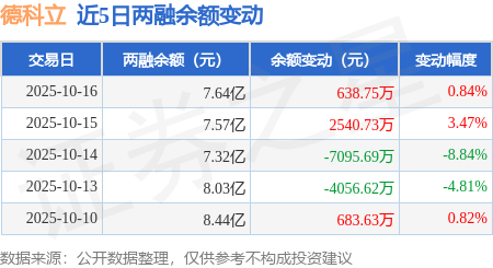 证券之星消息,10月16日,德科立(688205)融资买入8406.72万元,融资偿还7767.97万元,融资净买入638.75万元,融资余额7.64亿元,近20个交易日中有12个交易日出现融资净买入。