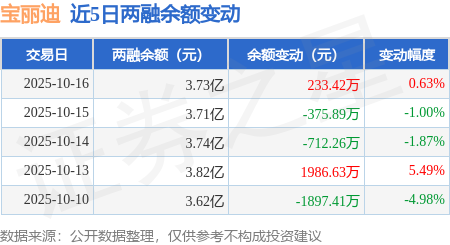 证券之星消息,10月16日,宝丽迪(300905)融资买入2935.65万元,融资偿还2702.23万元,融资净买入233.42万元,融资余额3.73亿元,近20个交易日中有11个交易日出现融资净买入。